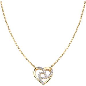 Amen Collana Donna in Argento 925 Placcato Oro con Doppio Cuore e Zirconi Bianchi