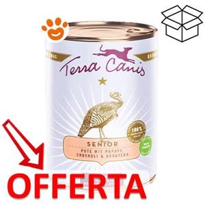 Terra Canis Senior Tacchino con Papaia, Borragine ed Erbe Officinali - Alimento Umido Completo per Cani Anziani - 400 g