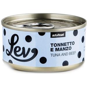 Lev Cat Adult - Alimento Umido con Tonnetto e Manzo, 70g, Senza Conservanti e Coloranti
