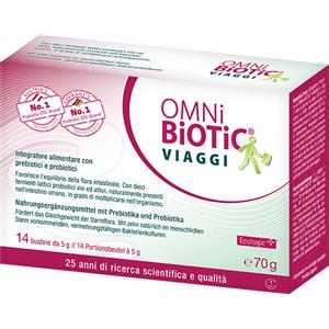 INSTITUT ALLERGOSAN OMNi BiOTiC VIAGGI - Integratore con 10 ceppi di probiotici e prebiotici, 14 bustine da 5 g