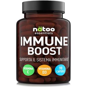 Natoo Essentials Immune Boost - Integratore per il Supporto del Sistema Immunitario con Vitamina C, D3, Zinco e Wellmune® - 90 Capsule