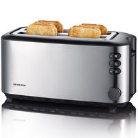 SEVERIN AT 2509 Tostapane 4 fette Maxi 1400W con griglia, tasto scongelamento e regolazione doratura, Tostafette 4 fette, Tostapane in acciaio inossidabile, Nero/argento opaco